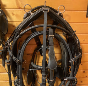 Horse harness racks keep your harness in great shape by storing it properly! Portable saddle racks, bucket hangers, and stable tack racks. See our article on Storing Your Harness.