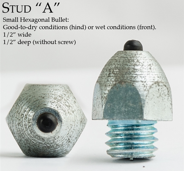 Horseshoe studs are designed to attach to the horseshoe to provide extra grip while being ridden or driven, particularly during competition or foxhunting. They are available in a variety of sizes and shapes to adapt to different footing conditions.