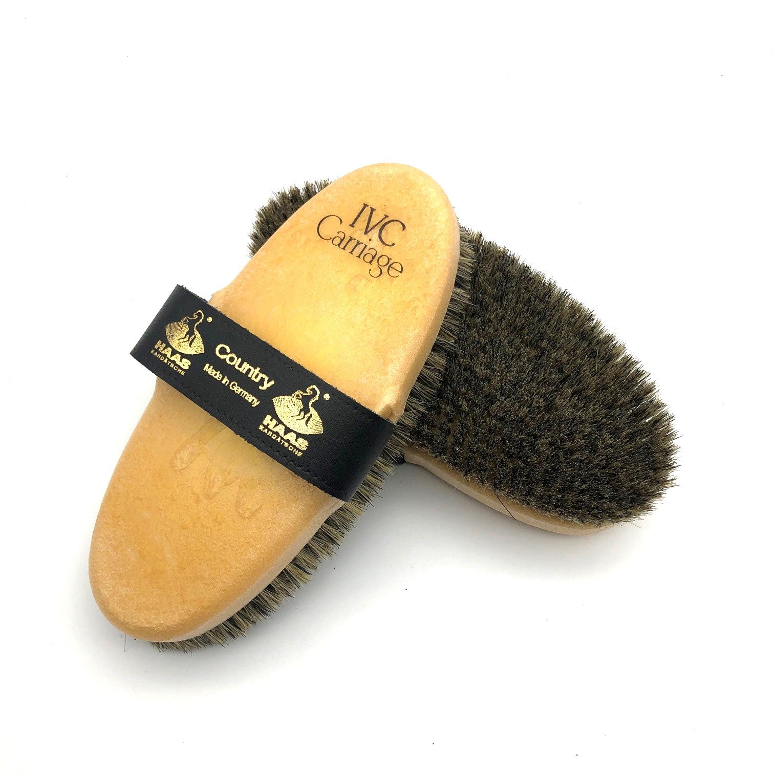 The Haas Country medium brush works great after the stiffer brushes to remove finer dirt. Great everyday horse brush.