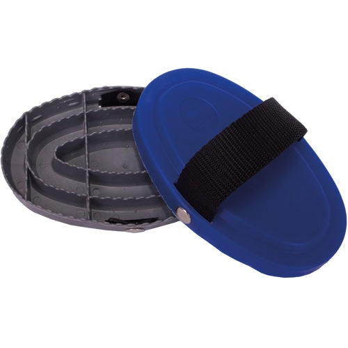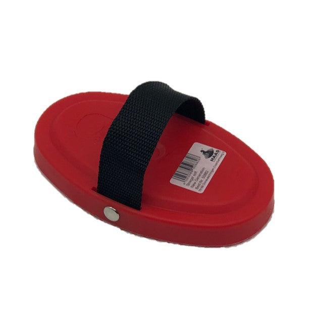 Curry comb that looks like any other curry, but it's not! It's made of special very soft plastic for a great massaging effect. This curry is amazing at removing dirt and loose hair, while not plugging up! A must for every barn.
